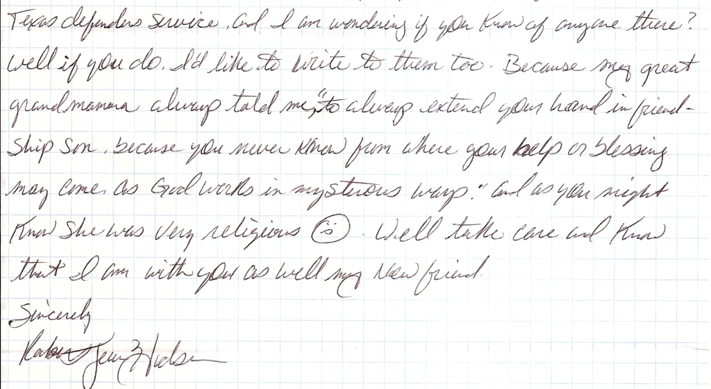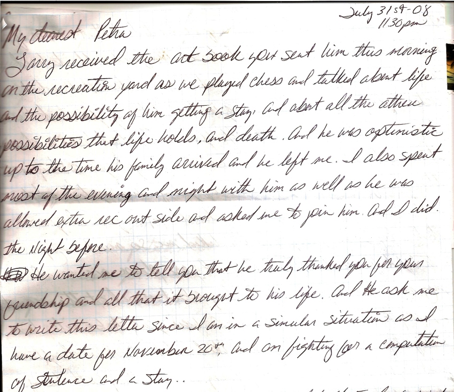 Greeting from Texas death row. First of all, I'd like to thank you for
